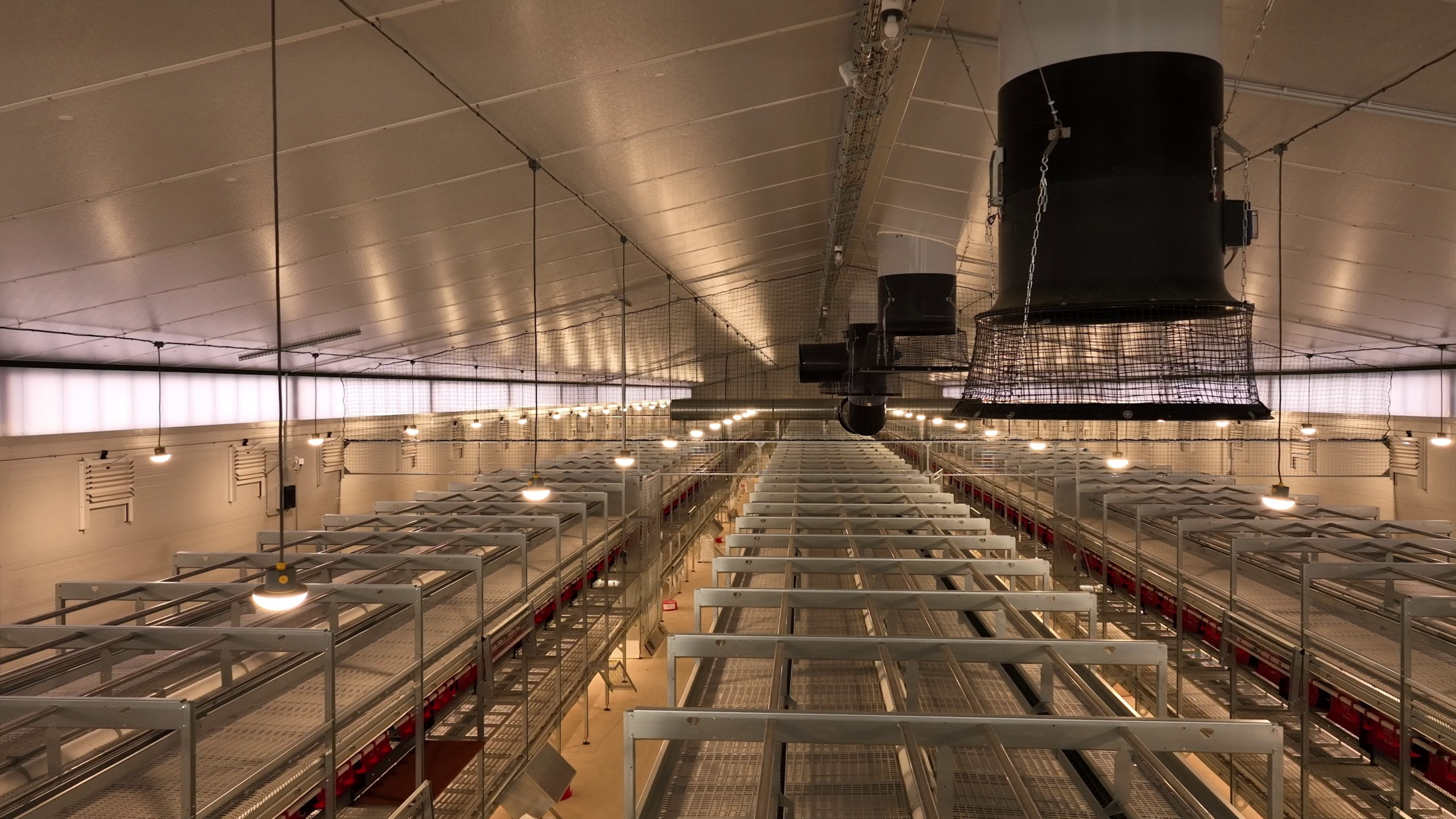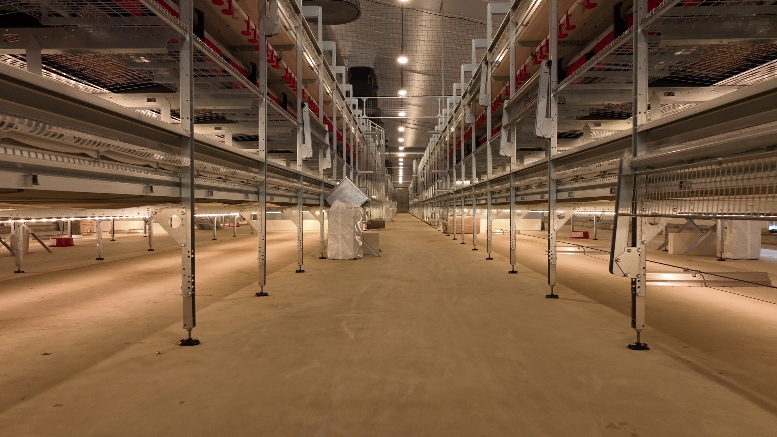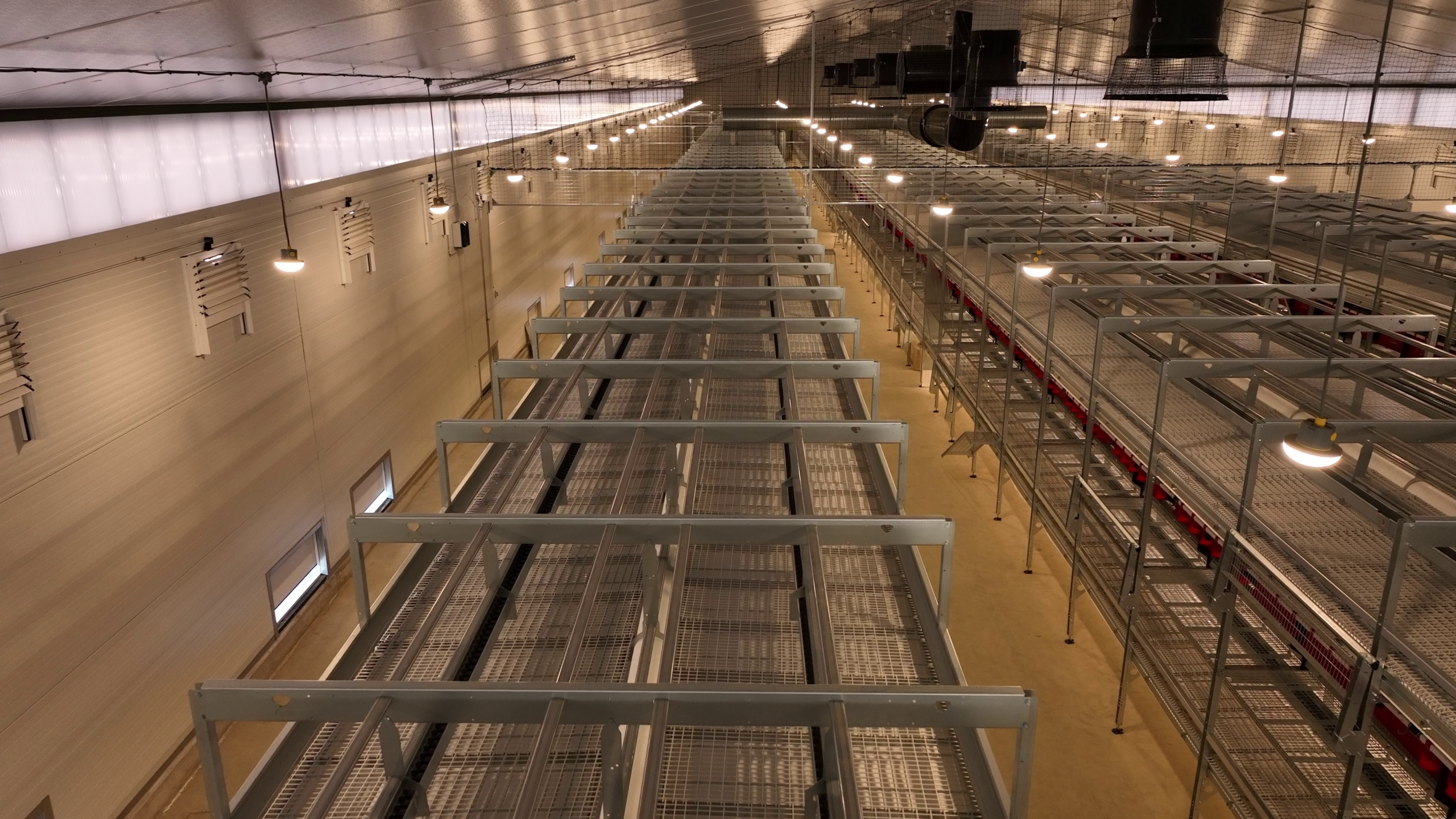 Im neuen Legehennestall der Familie wurde ein innovatives Beleuchtungssystem mit Amenta-Leuchten installiert.