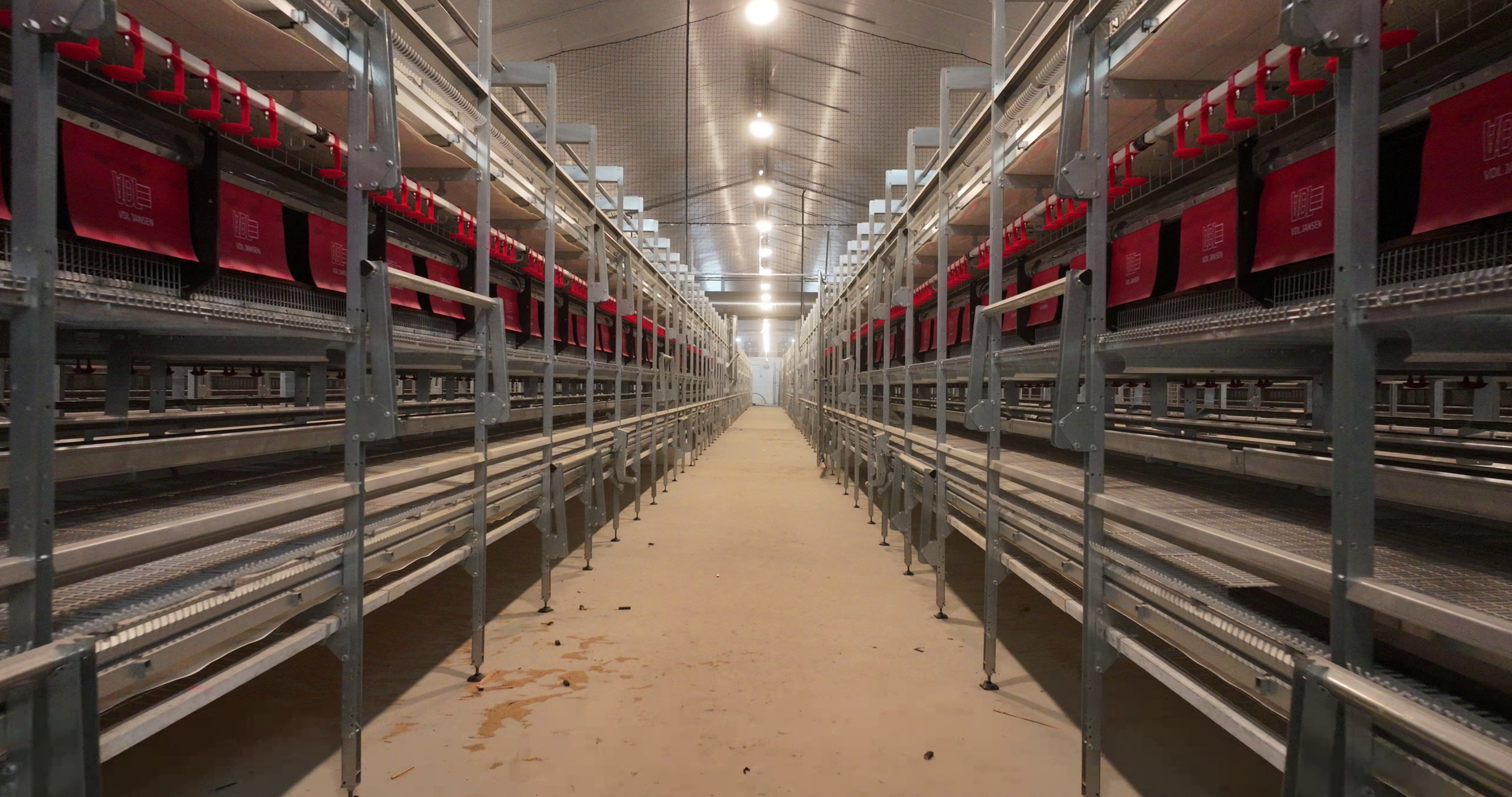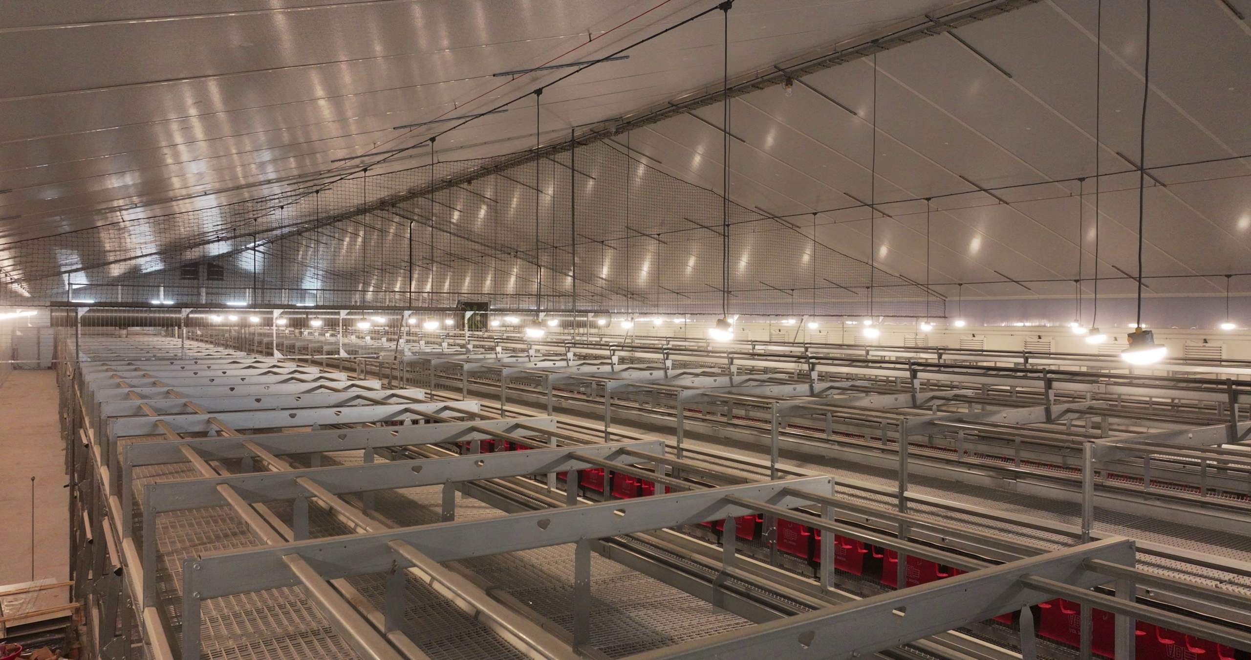 Im neuen Legehennestall der Familie wurde ein innovatives Beleuchtungssystem mit Amenta-Leuchten installiert.